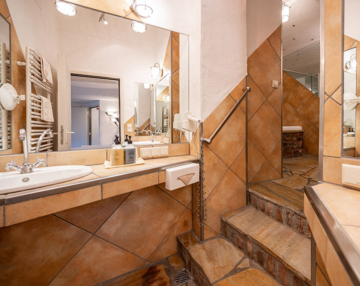 Eine frühere Anreise oder spätere Abreise ist nur in unseren Kleinen Stuben und Land Gut Zimmern, nur kurzfristig und nur nach Verfügbarkeit, möglich. Im Falle der Verfügbarkeit berechnen wir diese jeweils mit 75 Euro. In allen anderen Zimmertypen wird abhängig von der tagesaktuellen Belegung und Nachfrage der halbe bis ganze Übernachtungspreis berechnet.